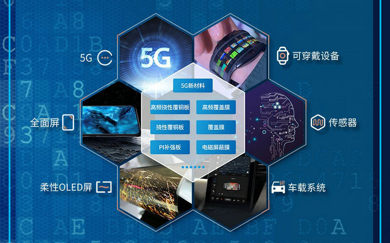 南昌正業所研發生產的FPC高端材料(高頻撓性覆銅板、高頻覆蓋膜、有膠撓性覆銅板、覆蓋膜、無膠單/雙面撓性覆銅板、PI補強板、電磁屏蔽膜等)廣泛應用于5G通訊、智能安防、智能車載、電動汽車和OLED等多個熱門高科技領域。原材料供應上可謂是一應俱全,滿足了客戶一站式采購訴求,更能幫助客戶提高采購效率,降低采購成本。