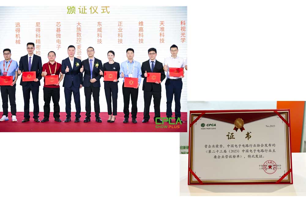 此外,正業(yè)科技榮登中國電子電路行業(yè)協(xié)會發(fā)布的《第二十三屆(2023)中國電子電路行業(yè)主要企業(yè)營收榜單》,特此發(fā)證。